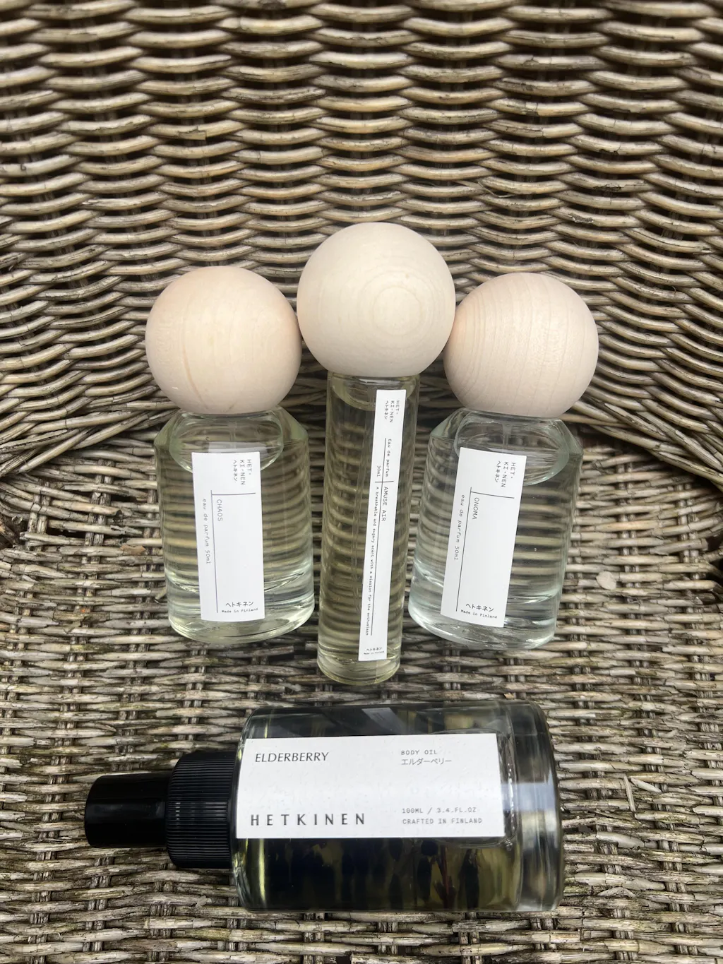 In de strakke flacon van Hetkinen, die in de hand aanvoelt als een echt bosartefact. Het is niet zomaar een voorwerp, maar een bron van kracht. Het levendige, onbewerkte oppervlak bewaart de warmte van het bos en herinnert me aan de onschatbare schatten die ik als kind verzamelde: grillige takken, ‘edelstenen’ en stukjes schors.