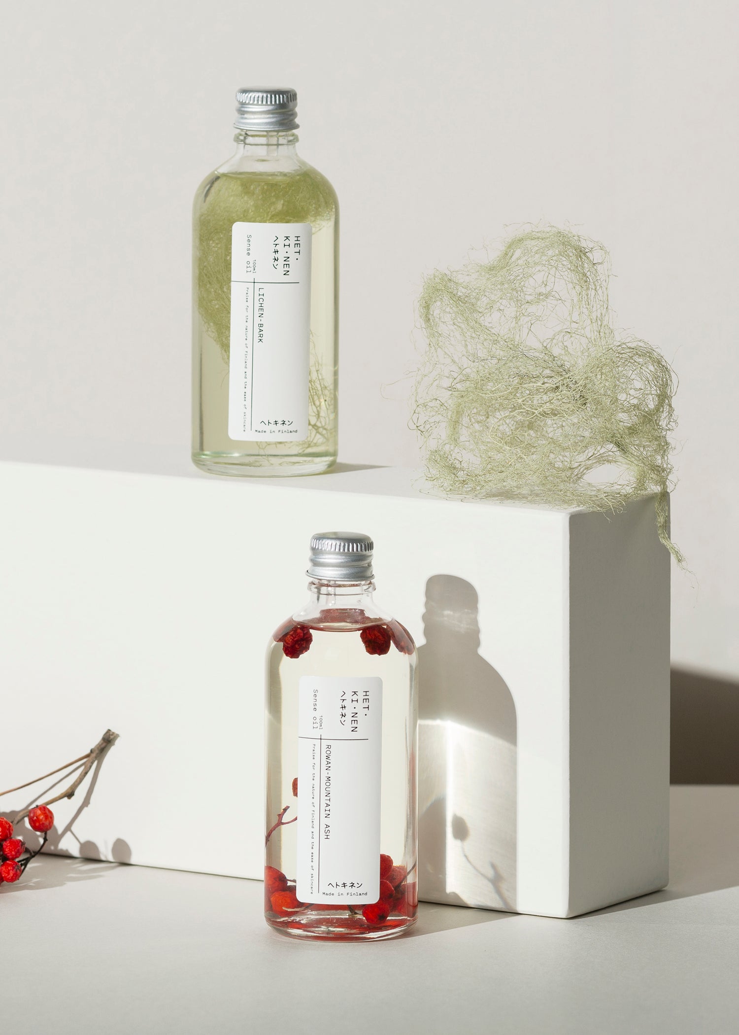 Lichen-bark natural body oil is enriched with usnea, a rare lichen that thrives on trees in Finland’s pristine forests. Usnea contains natural antibacterial properties, including healing zinc sulfate and usnic acid, which help protect the skin and support its natural resilience. Finnish oat oil, a super grain grown in pure Nordic fields, is packed with beta-glucans and avenanthramides, known for their ability to shield skin from free radicals and premature aging.